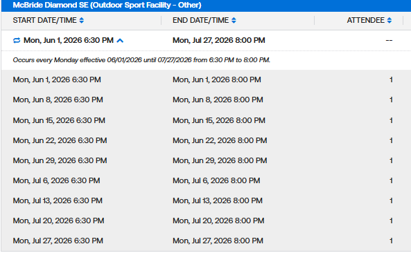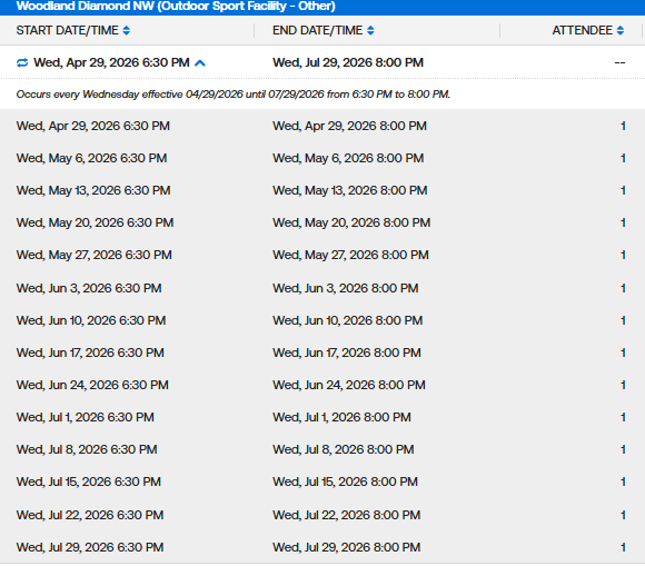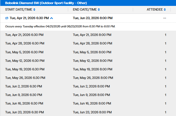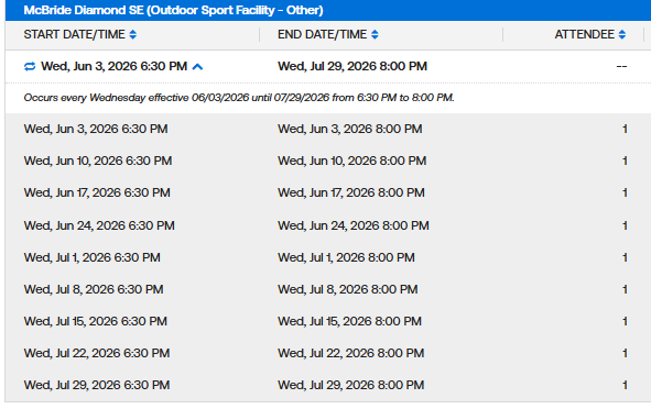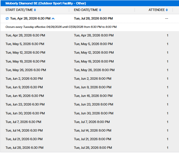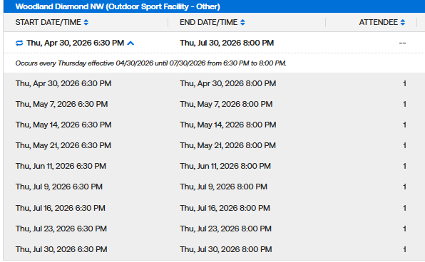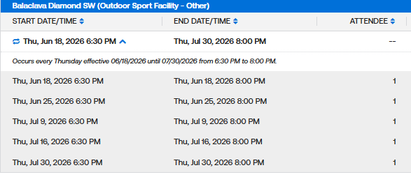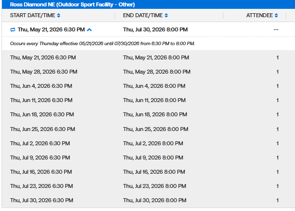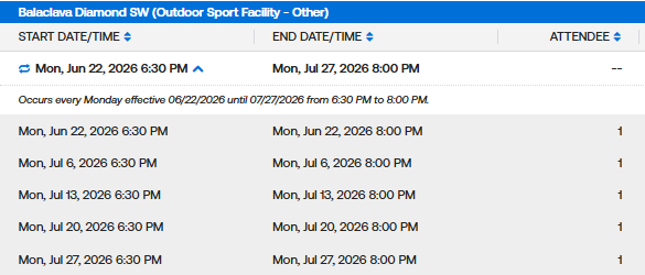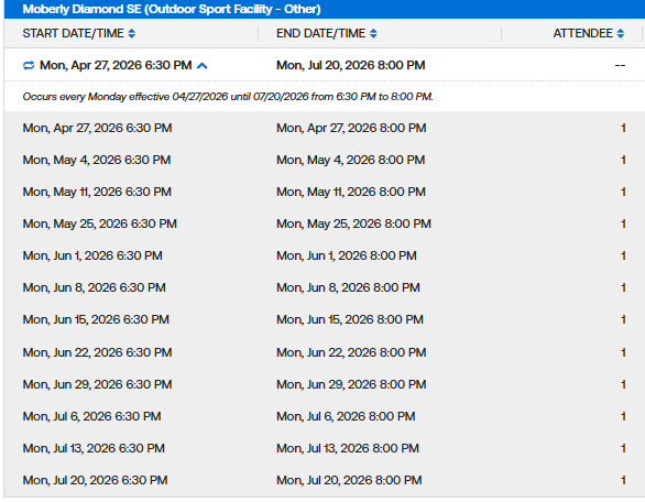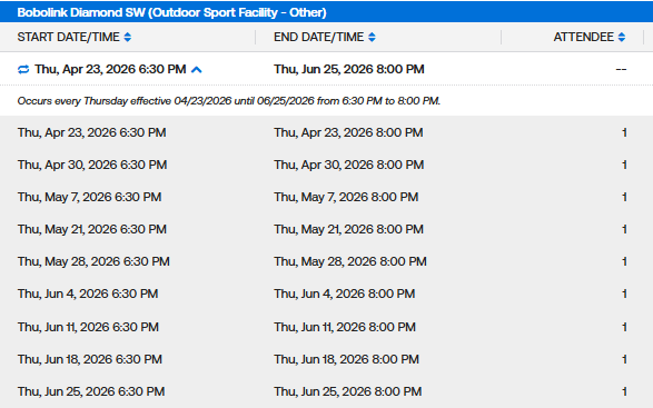 Weekday MaxFun Softball Permits